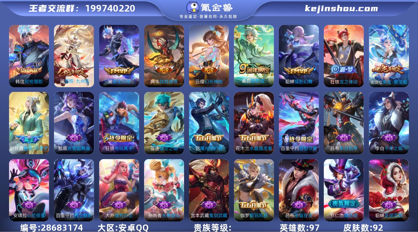 贵族0/皮肤20/史诗5/英雄49/阴阳师/无心/云中旅人(s29)/五谷丰年/海盐诗旅(s30)/古海寻踪(s33)/水果甜心/魅力维加斯/天才门将/教廷特使/死亡骑士/万象初新/沉稳之力/掌控之力/虚灵犬护/命运加冕/异域舞娘/西部大镖客-孙悟空/尼罗河女神/街头旋风